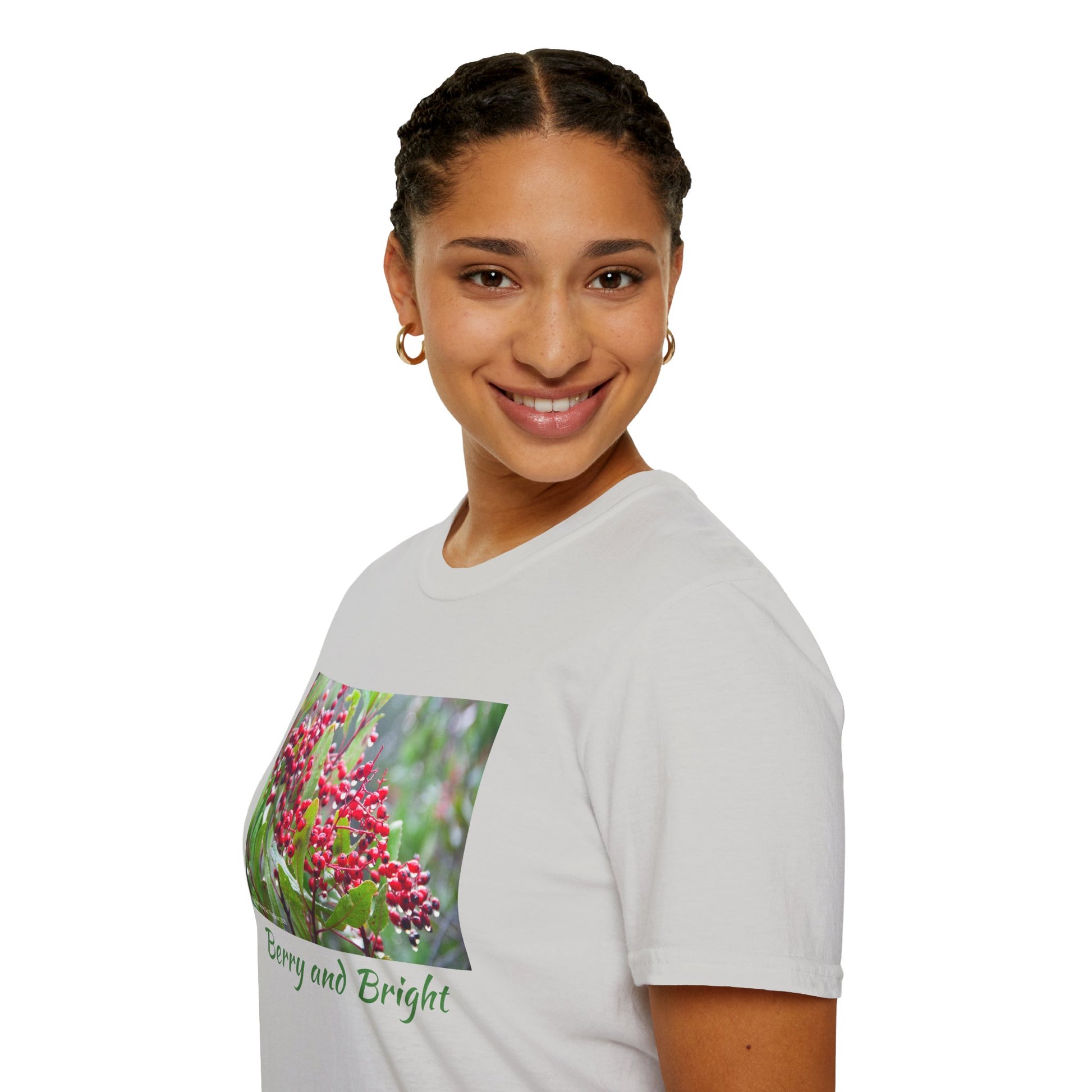 Explore a berry bright season everyday! These luscious winter berries will inspire more cheer into your wardrobe, and provide a pop of color into your life. This work of art soft-style t-shirt puts a new spin on casual comfort. Made from very soft materials, this tee is 100% cotton for solid colors. Heather colors and sports grey include polyester.